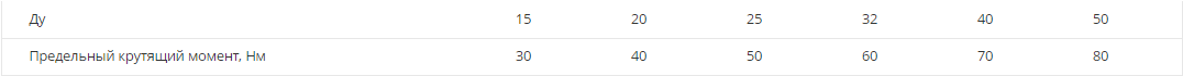 При монтаже клапанов запрещается прикладывать к ним крутящие моменты, превышающие значения, указанные в таблице: