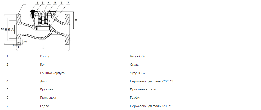 Обратный клапан фланцевый предназначен для защиты трубопровода и установленного оборудования от обратного потока рабочей среды.