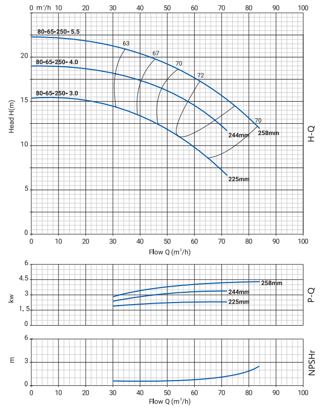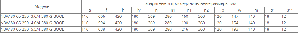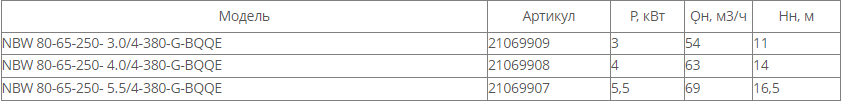 NBW 80-65-250- 5.5/4 (4 полюса двигателя, рабочее колесо - чугун)