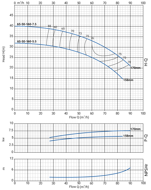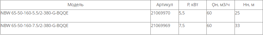 NBW 65-50-160-5.5/2 (2 полюса двигателя, рабочее колесо - чугун)