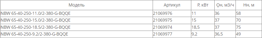 NBW 65-40-250-18.5/2(2 полюса двигателя, рабочее колесо - чугун)