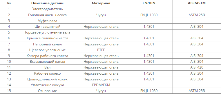 Насос состоит из основания и головной части. Промежуточные камеры и цилиндрический кожух соединены между собой, а также с основанием и головной частью при помощи стяжных болтов. Всасывающий и напорный патрубки находятся в основании насоса и расположены соосно (конструкция «ин-лайн»), что позволяет устанавливать насос на горизонтальном трубопроводе. Все насосы оснащаются необслуживаемым торцевым механическим уплотнением вала картриджевого типа.