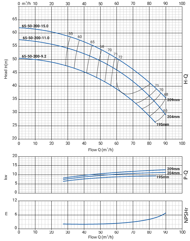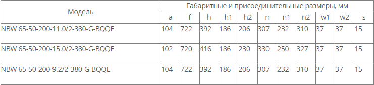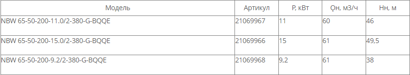 NBW 65-50-200-9.2/2 (2 полюса двигателя, рабочее колесо - чугун)