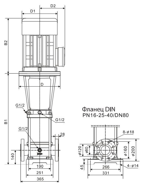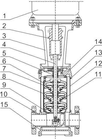 Насосы CVF представляют собой вертикальные многоступенчатые центробежные насосы с нормальным всасыванием со стандартным электродвигателем. Насос состоит из основания и головной части. Промежуточные камеры и цилиндрический кожух соединены между собой, а также с основанием и головной частью при помощи стяжных болтов. Всасывающий и напорный патрубки находятся в основании насоса и расположены соосно (конструкция «ин-лайн»), что позволяет устанавливать насос на горизонтальном трубопроводе. Все насосы оснащаются необслуживаемым торцевым механическим уплотнением вала картриджевого типа. Области применения