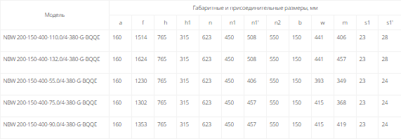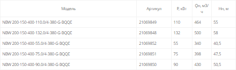 NBW 200-150-400-132.0/4 (4 полюса двигателя, рабочее колесо - чугун)