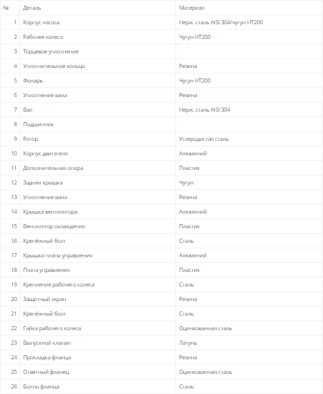Размеры и номинальные характеристики соответствуют стандарту EN 733. Подача насосов составляет от 0 до 500 м3/ч, напор от 0 до 131 м.