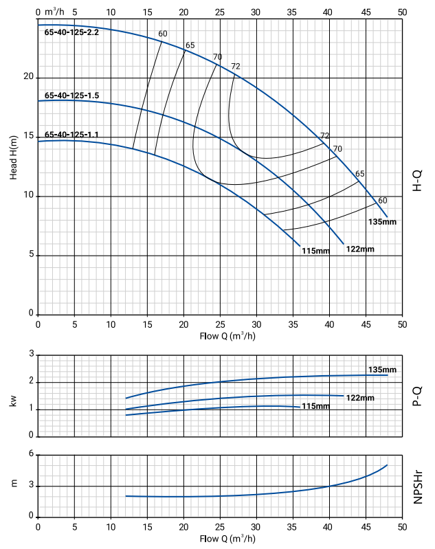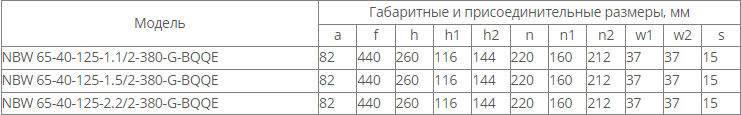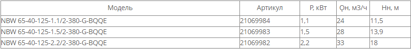 NBW 65-40-125-1.1/2 (2 полюса двигателя, рабочее колесо - чугун)
