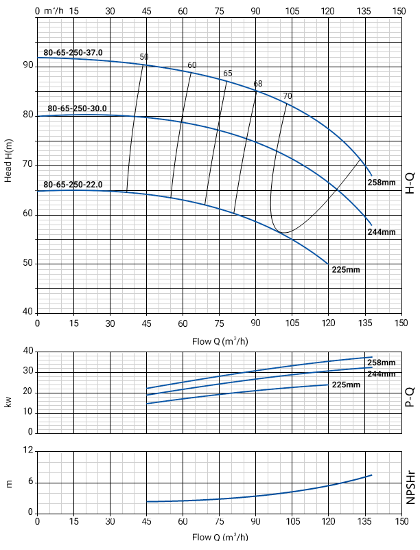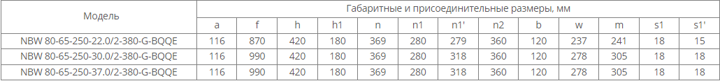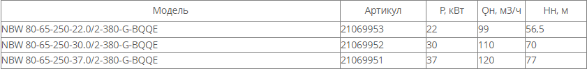 NBW 80-65-250-30.0/2 (2 полюса двигателя, рабочее колесо - чугун)