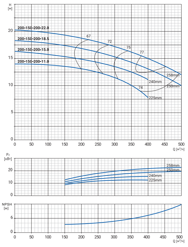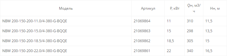NBW 200-150-200-11.0/4 (4 полюса двигателя, рабочее колесо - чугун)