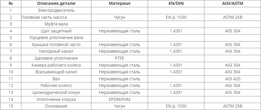 Насос состоит из основания и головной части. Промежуточные камеры и цилиндрический кожух соединены между собой, а также с основанием и головной частью при помощи стяжных болтов. Всасывающий и напорный патрубки находятся в основании насоса и расположены соосно (конструкция «ин-лайн»), что позволяет устанавливать насос на горизонтальном трубопроводе. Все насосы оснащаются необслуживаемым торцевым механическим уплотнением вала картриджевого типа.