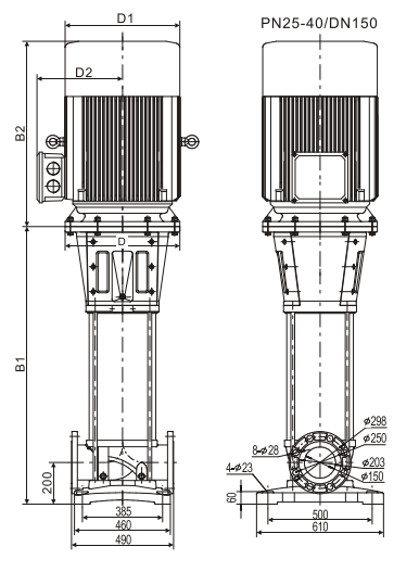 Насосы CV представляют собой вертикальные многоступенчатые центробежные насосы с нормальным всасыванием со стандартным электродвигателем.