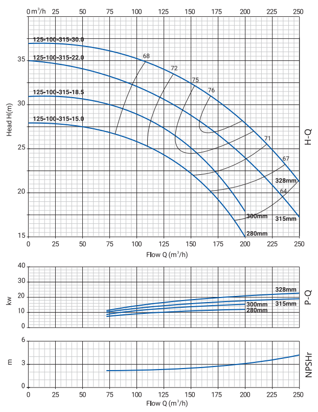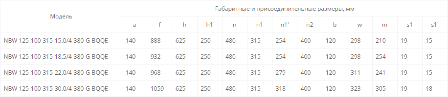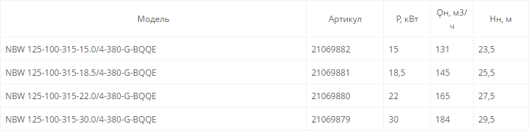 NBW 125-100-315-22.0/4 (4 полюса двигателя, рабочее колесо - чугун)