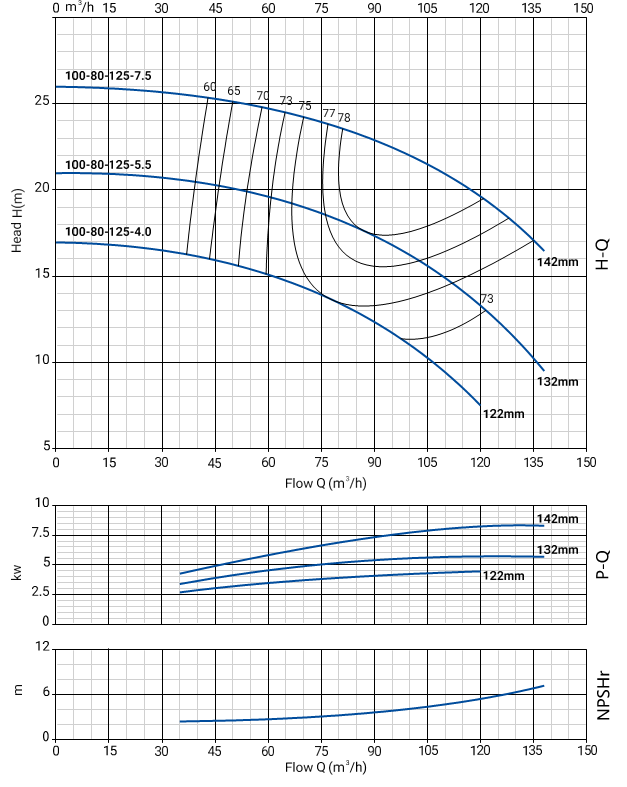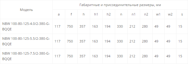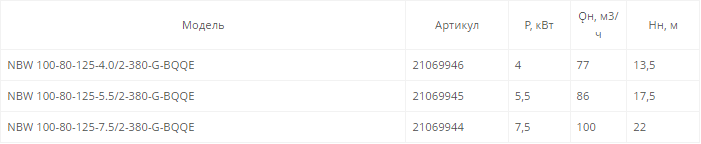 NBW 100-80-125-7.5/2 (2 полюса двигателя, рабочее колесо - чугун)