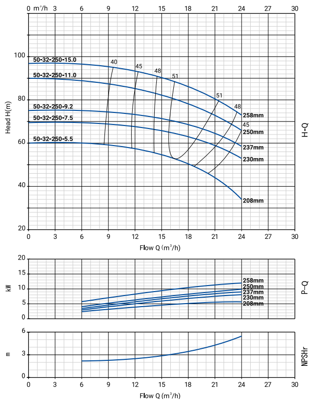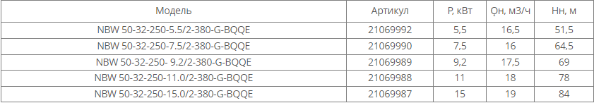 NBW 50-32-250-7.5/2 (2 полюса двигателя, рабочее колесо - чугун)