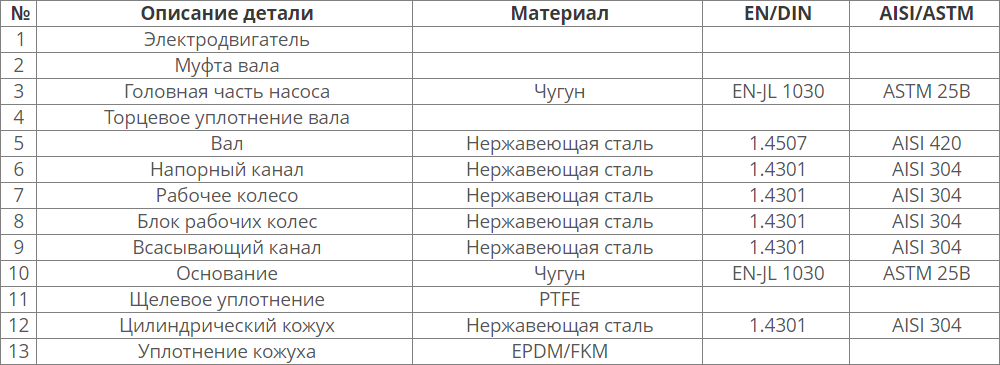 Насос состоит из основания и головной части. Промежуточные камеры и цилиндрический кожух соединены между собой, а также с основанием и головной частью при помощи стяжных болтов. Всасывающий и напорный патрубки находятся в основании насоса и расположены соосно (конструкция «ин-лайн»), что позволяет устанавливать насос на горизонтальном трубопроводе. Все насосы оснащаются необслуживаемым торцевым механическим уплотнением вала картриджевого типа. Области применения