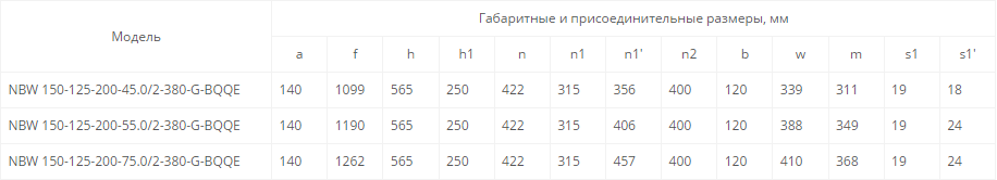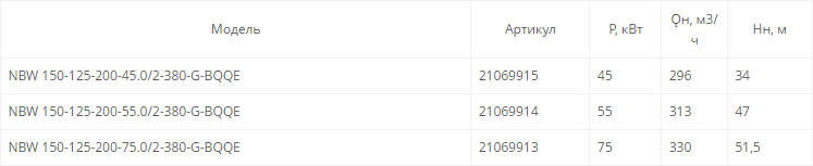 NBW 150-125-200-75.0/2 (2 полюса двигателя, рабочее колесо - чугун)