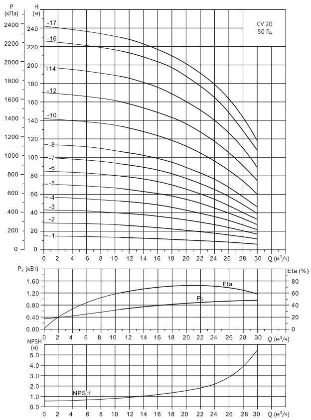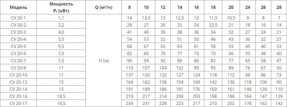Насосы CV представляют собой вертикальные многоступенчатые центробежные насосы с нормальным всасыванием со стандартным электродвигателем. Насос состоит из основания и головной части. Промежуточные камеры и цилиндрический кожух соединены между собой, а также с основанием и головной частью при помощи стяжных болтов. Всасывающий и напорный патрубки находятся в основании насоса и расположены соосно (конструкция «ин-лайн»), что позволяет устанавливать насос на горизонтальном трубопроводе. Все насосы оснащаются необслуживаемым торцевым механическим уплотнением вала картриджевого типа.