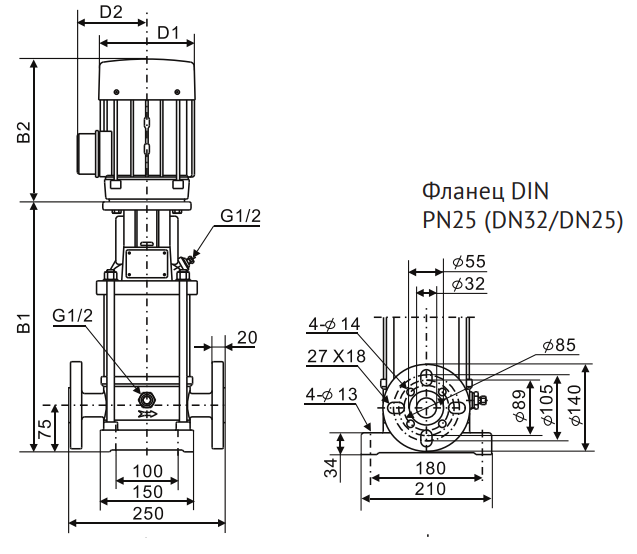 Насосы CV представляют собой вертикальные многоступенчатые центробежные насосы с нормальным всасыванием со стандартным электродвигателем. Насос состоит из основания и головной части. Промежуточные камеры и цилиндрический кожух соединены между собой, а также с основанием и головной частью при помощи стяжных болтов. Всасывающий и напорный патрубки находятся в основании насоса и расположены соосно (конструкция «ин-лайн»), что позволяет устанавливать насос на горизонтальном трубопроводе. Все насосы оснащаются необслуживаемым торцевым механическим уплотнением вала картриджевого типа. Области применения