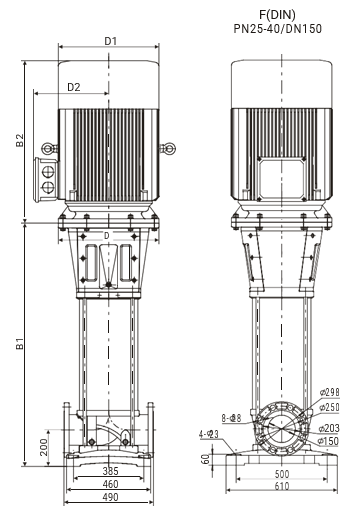 Насосы CVF представляют собой вертикальные многоступенчатые центробежные насосы с нормальным всасыванием со стандартным электродвигателем.