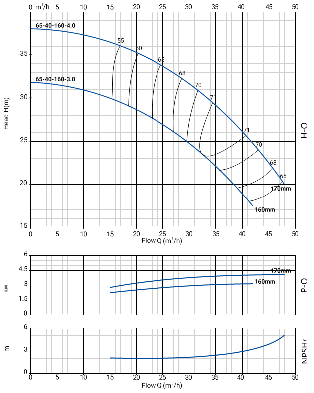 NBW 65-40-160-3.0/2 (2 полюса двигателя, рабочее колесо - чугун)