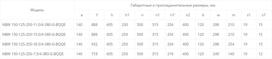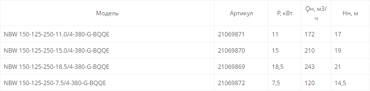 NBW 150-125-250-11.0/4 (4 полюса двигателя, рабочее колесо - чугун)