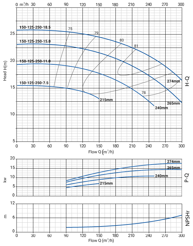 Размеры и номинальные характеристики соответствуют стандарту EN 733. Подача насосов составляет от 0 до 500 м3/ч, напор от 0 до 131 м.