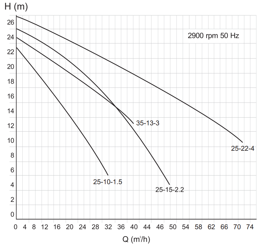 Корпус насоса выполнен из чугуна. Торцевое уплотнение - карбид кремния/графит. Рабочее колесо спирального типа выполнено из нержавеющей стали.