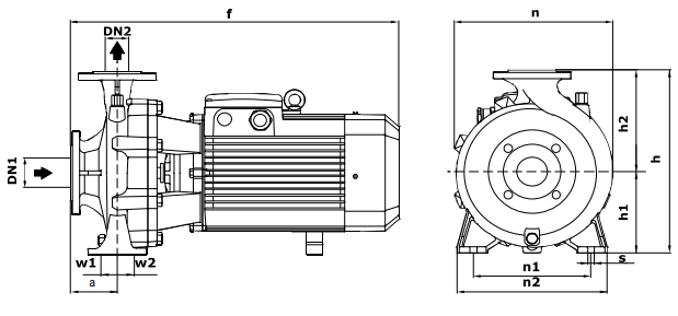 Насосы NBW оснащаются стандартными электродвигателями закрытого типа с вентиляторным охлаждением. Частота вращения составляет 2900 об/мин (2-полюсные) или 1450 об/мин (4-полюсные). Мощность 2-полюсных двигателей составляет от 0,75 до 160 кВт, мощность 4-полюсных двигателей - от 3 до 132 кВт. Питание электродвигателя осуществляется от сети с напряжением 380В и частотой 50 Гц.