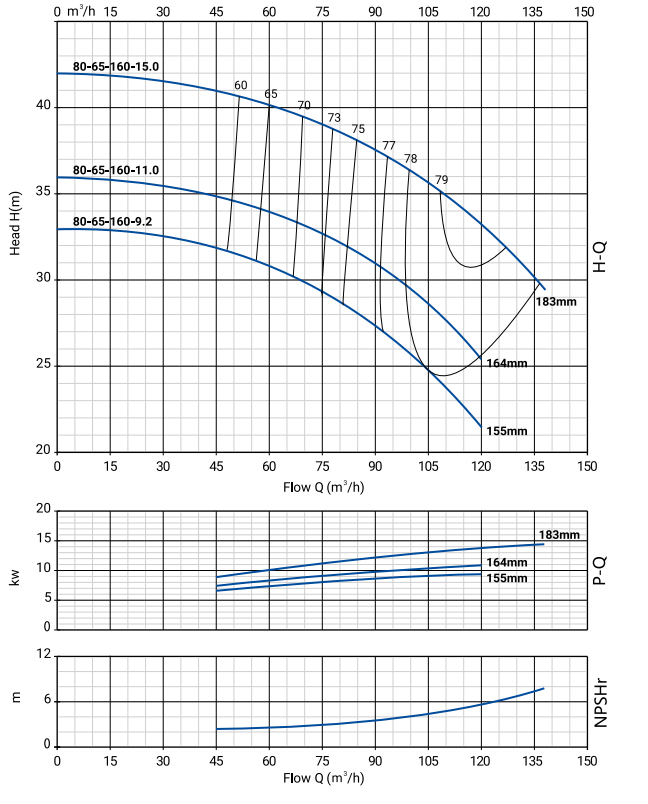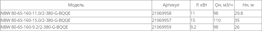 NBW 80-65-160-11.0/2 (2 полюса двигателя, рабочее колесо - чугун)
