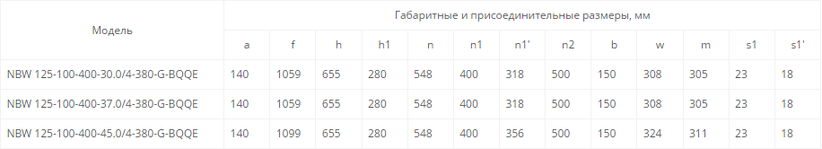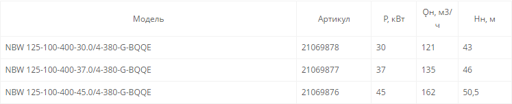 NBW 125-100-400-37.0/4 (4 полюса двигателя, рабочее колесо - чугун)