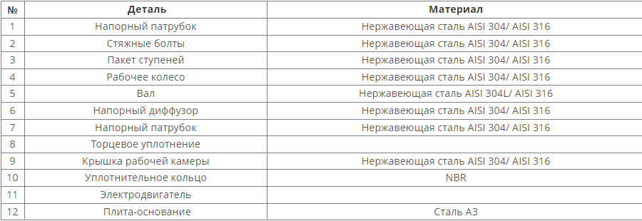 Насосы CUC состоят из двух основных частей: электродвигатель и насосный агрегат. Промежуточные камеры соединены между собой, а также с основанием и головной частью насоса при помощи стяжных болтов.