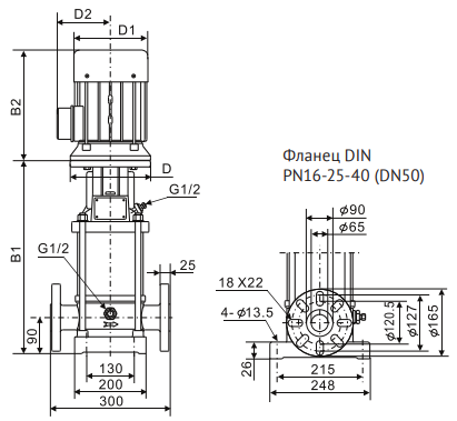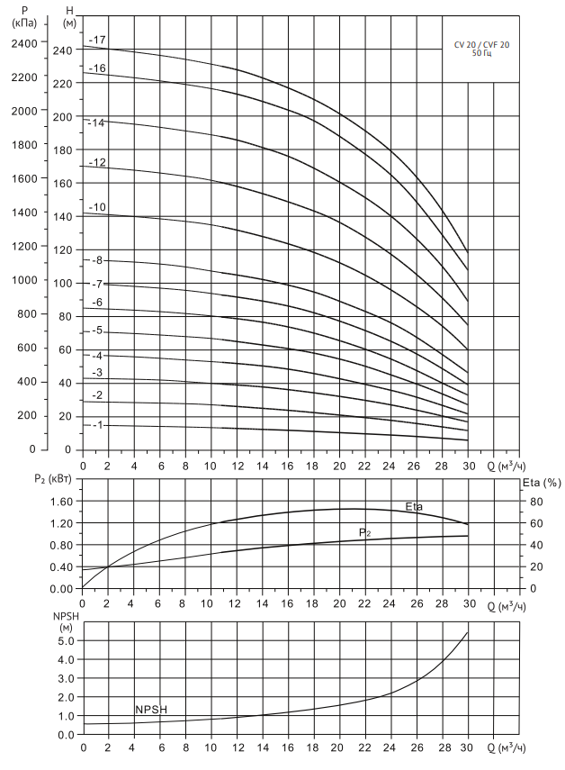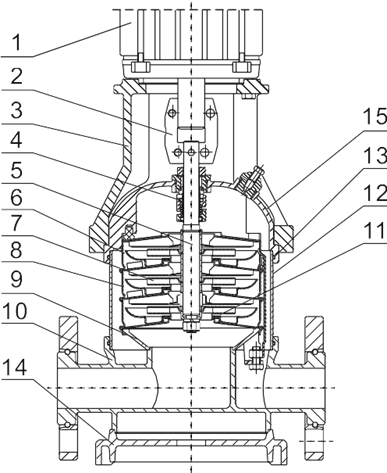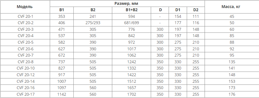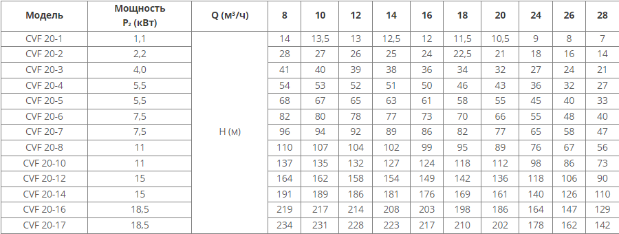 Насосы CVF представляют собой вертикальные многоступенчатые центробежные насосы с нормальным всасыванием со стандартным электродвигателем. Насос состоит из основания и головной части. Промежуточные камеры и цилиндрический кожух соединены между собой, а также с основанием и головной частью при помощи стяжных болтов. Всасывающий и напорный патрубки находятся в основании насоса и расположены соосно (конструкция «ин-лайн»), что позволяет устанавливать насос на горизонтальном трубопроводе. Все насосы оснащаются необслуживаемым торцевым механическим уплотнением вала картриджевого типа.