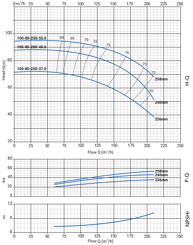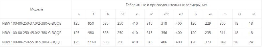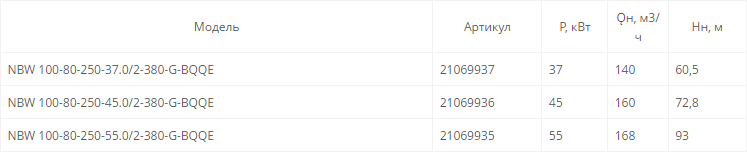 NBW 100-80-250-55.0/2 (2 полюса двигателя, рабочее колесо - чугун)