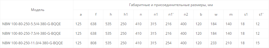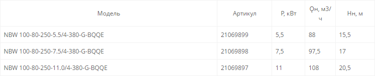 NBW 100-80-250-5.5/4 (4 полюса двигателя, рабочее колесо - чугун)