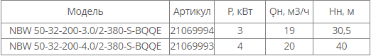 NBW 50-32-200-4.0/2(2 полюса двигателя, рабочее колесо - нерж. сталь)