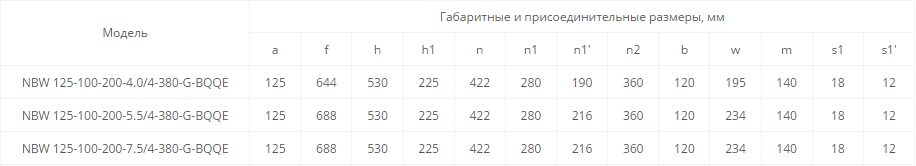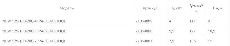 NBW 125-100-200-5.5/4 (4 полюса двигателя, рабочее колесо - чугун)