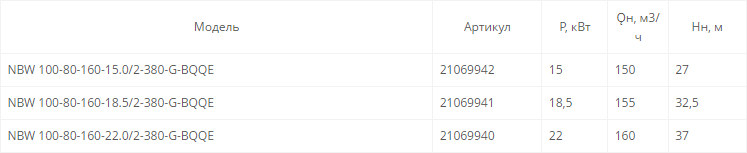 NBW 100-80-160-18.5/2 (2 полюса двигателя, рабочее колесо - чугун)