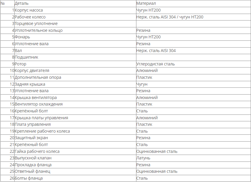 Размеры и номинальные характеристики соответствуют стандарту EN 733. Подача насосов составляет от 0 до 500 м3/ч, напор от 0 до 131 м.