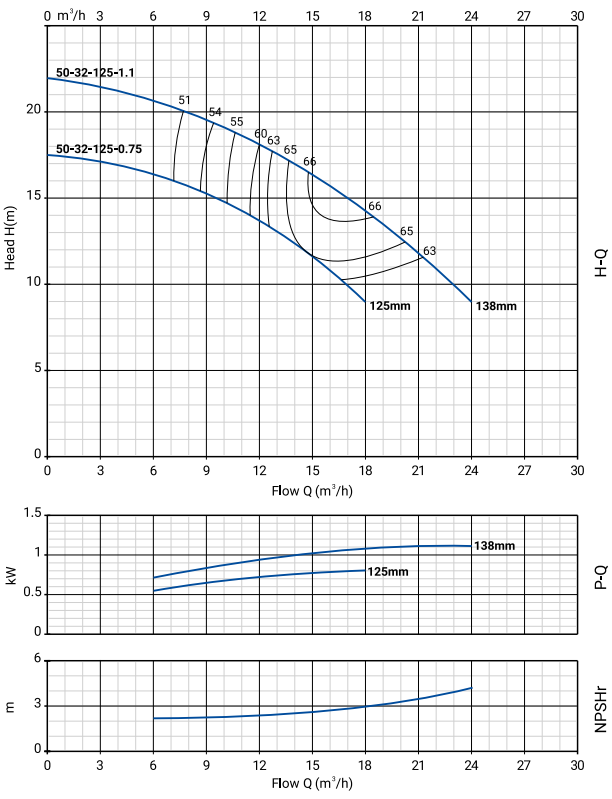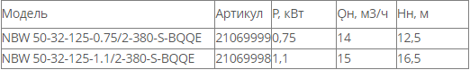 NBW 50-32-125 (2 полюса двигателя, рабочее колесо - нерж.сталь)