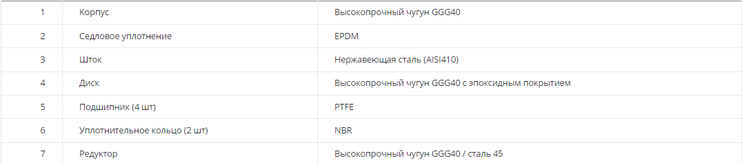 Материалы конструкции DN 50-350 Материалы конструкции DN 400-500