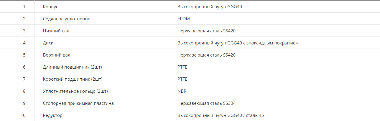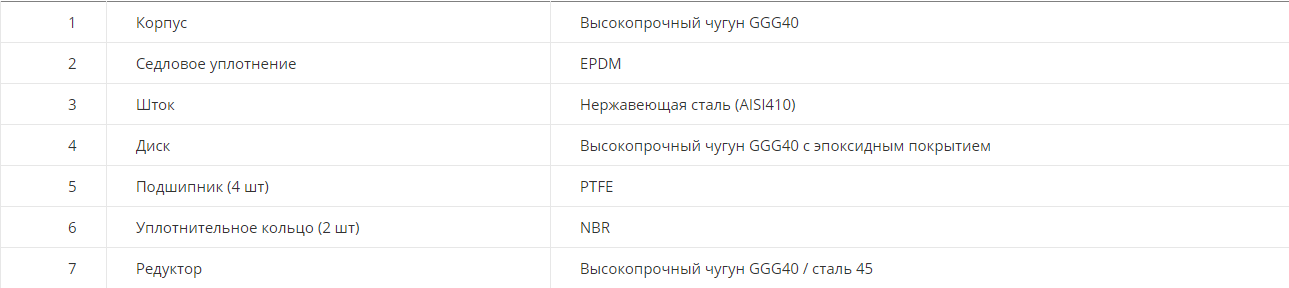 Материалы конструкции DN 40-350 Материалы конструкции DN 400-800
