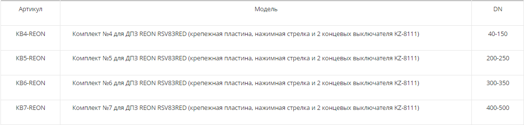 Комплекты для затвора тип RSV83RED DN50-500 (крепежная пластина + нажимная стрелка и 2 концевых выключателя KZ-8111)